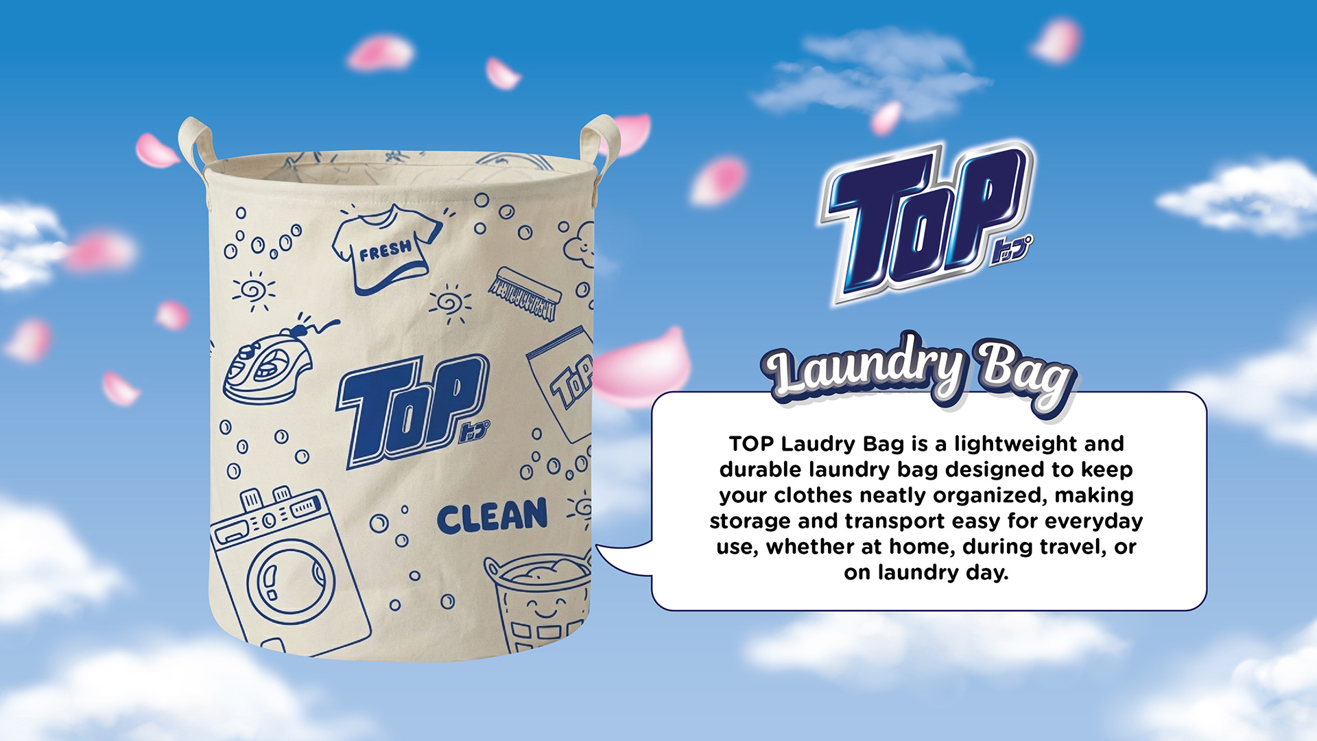 TOP Laudry Bag is a lightweight and durable laundry bag designed to keep your clothes neatly organized, making storage and transport easy for everyday use, whether at home, during travel, or on laundry day.